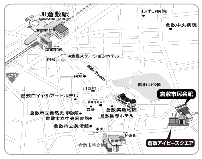 | 【倉敷アイビースクエア】 〒710-0054 岡山県倉敷市本町7-2 TEL:086-422-0011 |