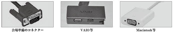 PCプレゼンテーションによる発表のみとなります。 なお、発表データに動画を使用されている場合(Power Pointのアニメーション機能除く)、またはMacintoshに関しましてはご自身のPCとACアダプターおよび外部出力用コネクタをお持ち込みください。 |
