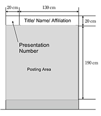 Your posters should not be larger than 150cm Width × 190cm Height. The presentation number is shown at the upper left corner of each panel. Please find your presentation number and put up your poster. Pushpins are prepared at each panel.