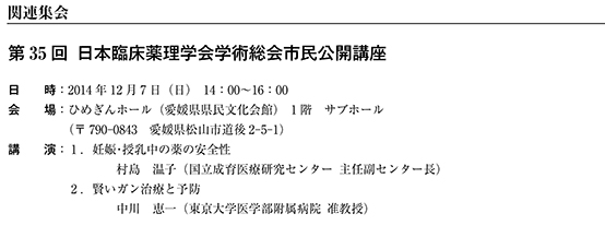 Copyright © 2013 The 35th annual Meeting of The Japanese Society of Clinical Phaqrmacology and Therapeutics. All Rights Reserved.
