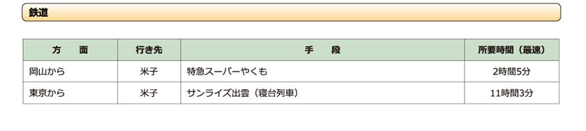| ● | 米子空港から車で約25分 |
