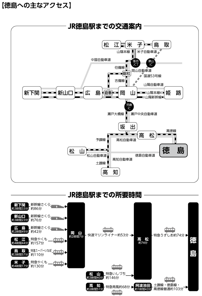 徳島駅から「阿波池田」行、又は「穴吹」行に乗車し、「蔵本駅」で下車、徒歩約5分