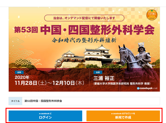 | 3. | 視聴サイト(e-casebook)のアカウントを既にお持ちの方は、「e-casebookに