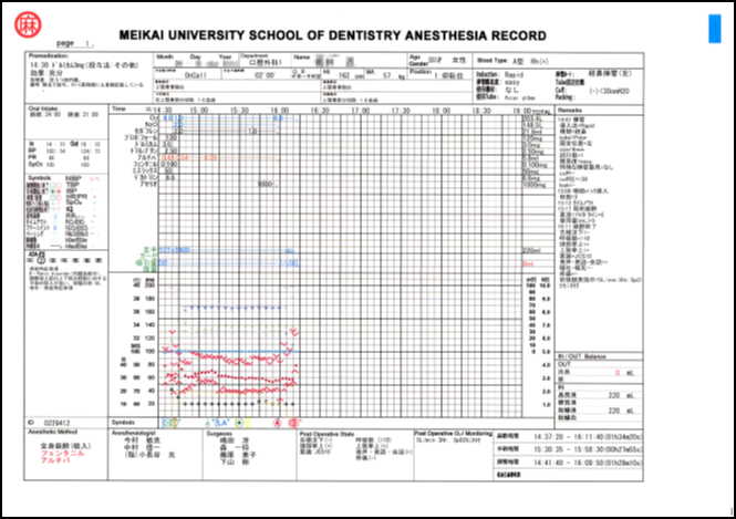 paperChartはWindows上で作動するフリーの自動麻酔ソフトウエアです.paperChartは使用できるバイタルサインモニターの種類が多く,特定の会社に限定されておりません.また操作が簡単で実際の麻酔記録に近いと評判です.簡便なソフトウエアですが,拡張性にも優れており,大規模病院での導入実績も数多くあります.もちろん歯科医院でも導入実績があり鎮静法の麻酔記録管理として使用できることが魅力的です.マニュアルが充実しており,全国の多くのユーザーが互いにサポートする体制が整っております.