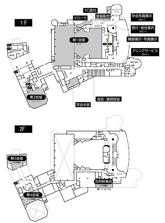 | 2) | 発表者受付時間、場所について ご発表時間の60分前までには必ず下記の場所にて受付、試写をお済ませください。