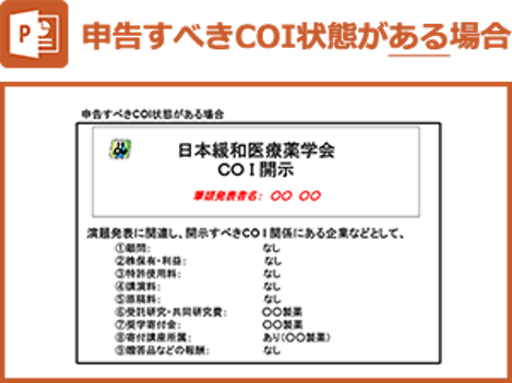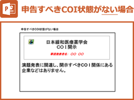 当日発表の際はスライドまたはポスターで利益相反について表示していただきます。