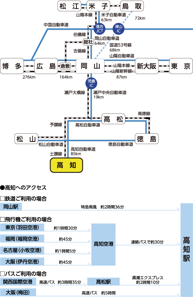 ○空港連絡バス… 約30分 はりまや橋観光バスターミナル下車 徒歩約1分