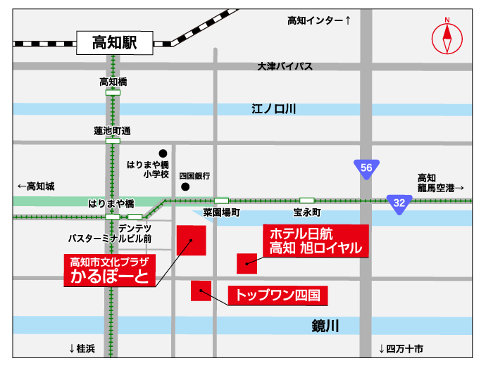 ○電車… とさでん交通 はりまや橋下車 徒歩約5分 / 菜園場町下車 徒歩約3分