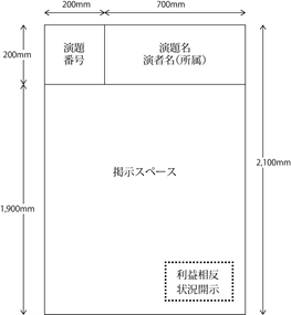 一般演題(ポスター)司会の先生方は、ご担当セッション開始前にCOI状態についての開示に関するA4サイズのポスターをご用意いただき、パネルに掲示してください。