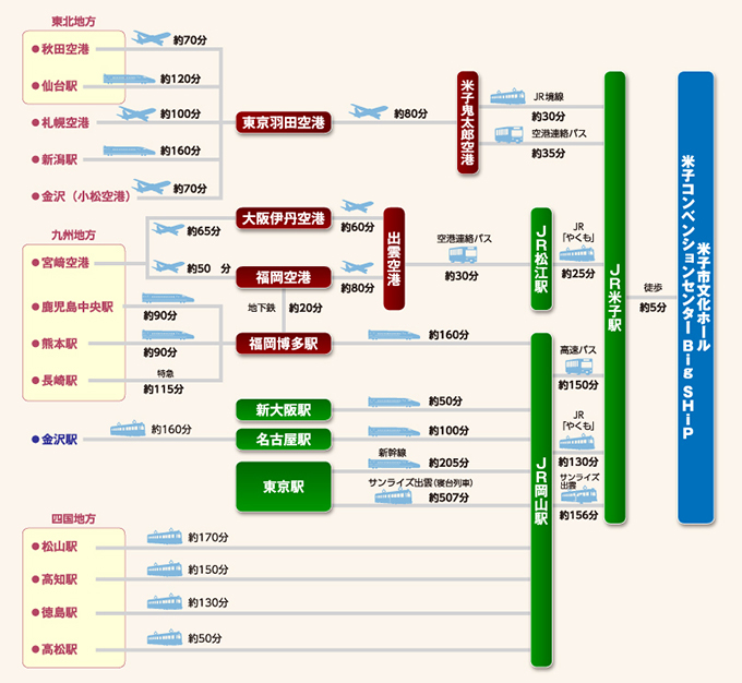 | ※ | ビッグシップ前駐車場では、米子コンベンションセンターをご利用されたお客様の駐車料金が割引となります。ご参加される会場内まで駐車券をご持参下さい。出庫後で料金をお支払い済みの場合は対象となりませんのでご了承願います。 |