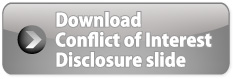 | 4. | CONFLICTS OF INTEREST OF THE AUTHOR Disclosure of any possible conflicts of interest(COI) of the first author (for example, a provision of a part-time salary, lecture fees, research funds [including scholarship donations], personnel, etc. to the presenter himself/herself by a profit-making company or organization associated with any product, etc. included in the relevant research) is required. Therefore, such COI information must be disclosed in the presentation. Please add a Conflict of Interest Disclosure slide at the beginning or end of your presentation. |