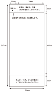 | ○ | ポスターサイズ:幅90cm、高さ160cm 以内 上記サイズ内に収まる大きさのものであれば、様式は問いません。 (右図をご参照ください) |