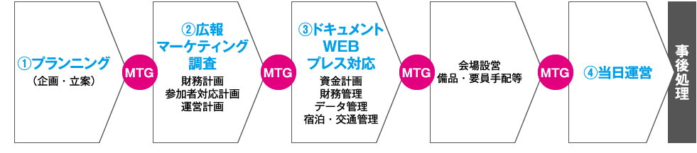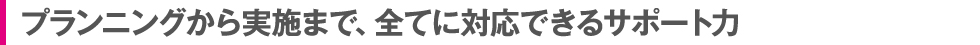 企画・立案から実施まで、開催に向けての全てのサービスメニューが揃っております。