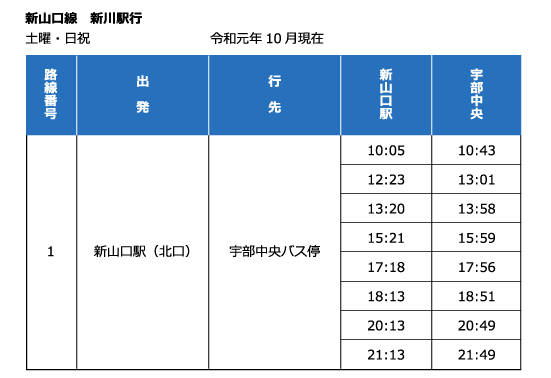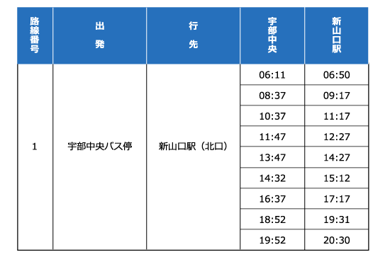 新山口駅北口バスターミナル1番のりばより