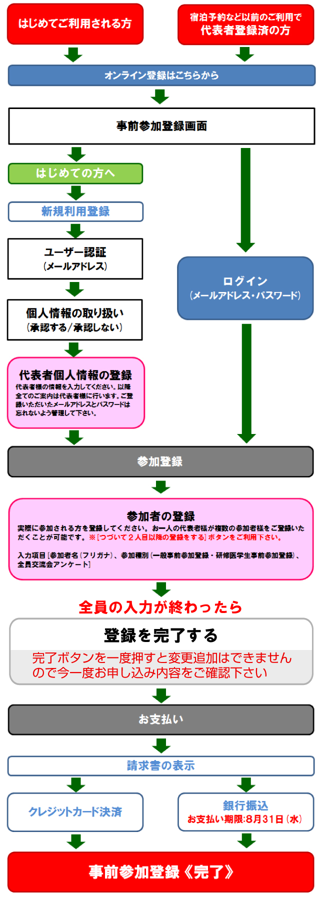 | 5. | 事前参加登録期間(個人登録、団体登録とも共通) 事前参加登録は締切いたしました。 ※銀行振込の振込期限は8月31日(水)となります。 |