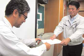 安全衛生委員会で、いまだに禁煙できない喫煙者8名全員が禁煙にチャレンジすることを決め、そしてこの安全大会を機に社員全員の前で、社長に宣言するということになったのです。一人一人が前に出て、日付と直筆のサインを入れた禁煙宣言書を読み上げ、社長に手渡しました。そして、そのあと社長から、「8人全員が禁煙チャレンジに成功したら、全社員に健康報奨金として一人2万円を支給します! 健康促進の為にと報奨金を決めました。禁煙判定期日は12月末日とします!」との約束が表明されました。