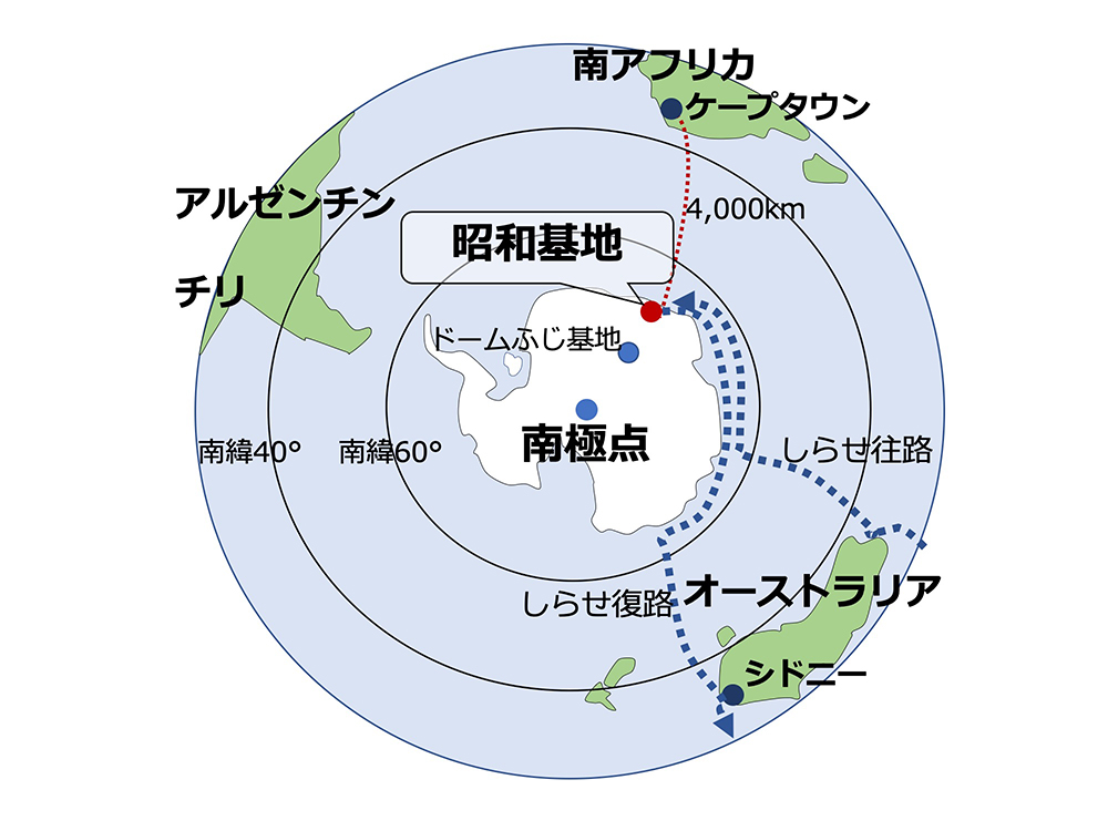 図1. 昭和基地の位置と砕氷艦しらせの航路 |