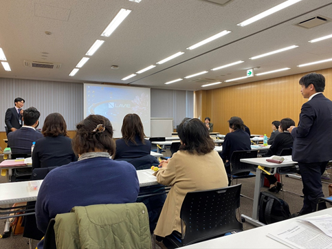 世話人会のあと行われた産業看護部会研修会では、「虚血性心疾患の解決に向けて」をテーマに、八木秀介氏(徳島大学大学院医歯薬学研究部 特任准教授)の講演があり、続くグループワークで「心疾患予防を考える保健指導」をテーマに事例検討を行いました。
