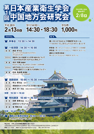 第1回日本産業衛生学会中国地方研究会ご報告 |